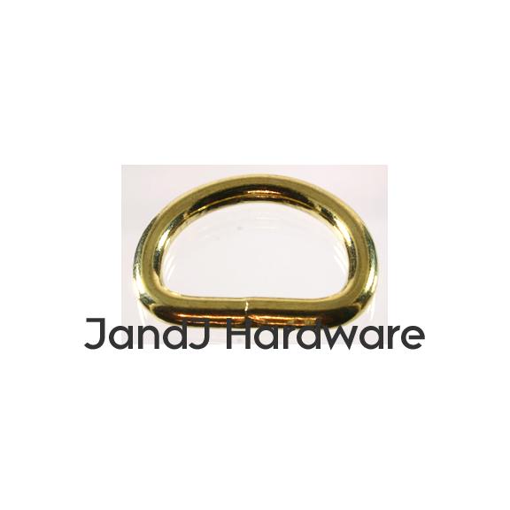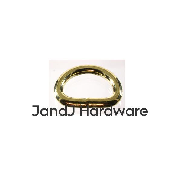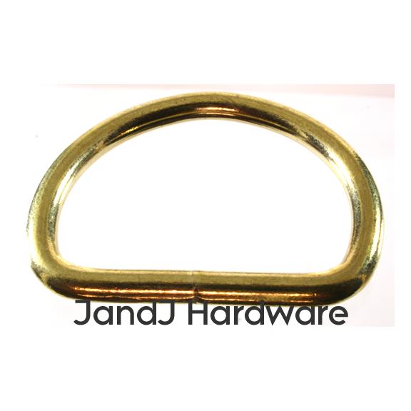 | By request we have added three sizes of brass plated heavy D rings (please note, not solid brass which is a lot more expensive). These are identical in every way to the same sized D rings found on our Heavy D ring page, where we offer a greater number of sizes in nickel plating. We provide 2 measurements, the first, in inches, is the inner diameter of the ring, this is measured at the straight part of the D, and, therefore, is the size of the material which will fit correctly into the ring. This dimension is just slightly generous (a 1" ring may measure 1.05") so that there is no binding. The second is the thickness, in millimeters, of the material itself. Separately we offer other styles of D rings which you can view from the menu to your left. Please see sizes available in the chart below. |