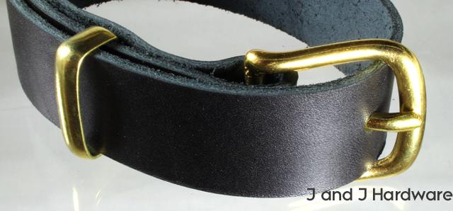 These one inch wide dress buckles come in two different finishes. Like most dress buckles, they are not roller buckles, but feature a rounded end, far more popular in dress buckles. Shown here with a brass plated version of our deluxe belt keepers , which gives the finished belt a classy look. Installs the same as all heel buckles, very easy, even for beginners.
