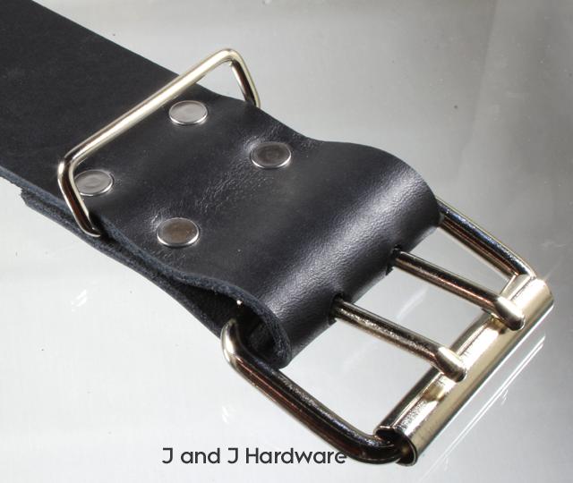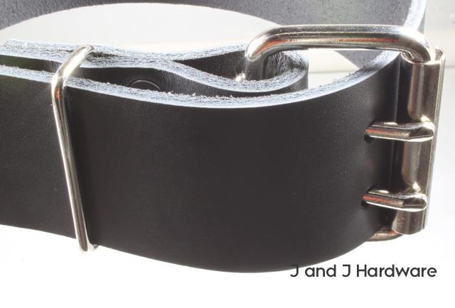 In the "in use" image you can see we added one of our 2 inch wide wire belt keepers , because in really heavy leather it is tough to tuck the tongue in the other half of the buckle. Add the keeper - a piece of cake, just skip the back half when using the buckle.
