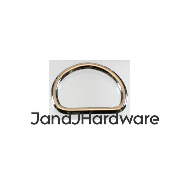 | Here we offer what we refer to as our "heavy D" selection. These are big and bulky D rings that are ideal for use in applications such as dog collars, plant hangers, belts, and many other uses where a D that can support some serious weight is needed. These are formed by bending stock wire into the correct shape, and then applying a weld to the point where they join. The finish is applied after that process is complete. This differs from cast rings, which are poured as molten metal into a mold, and the resulting product is without a weld, and one solid piece. The welded wire rings (these) are by far both the most common, and the least expensive. We provide 2 measurements, the first, in inches, is the inner diameter of the ring, this is measured at the straight part of the D, and, therefore, is the size of the material which will fit correctly into the ring. This dimension is just slightly generous (a 2" ring may measure 2.05") so that there is no binding. The second is the thickness, in millimeters, of the material itself. Separately we offer other styles of D rings which you can view from the menu to your left. Please see sizes available in the chart below. |