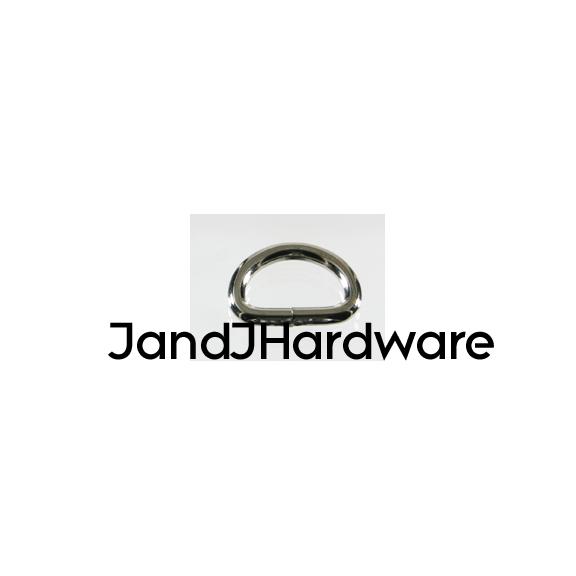 | These light weight welded D rings are a more rounded contour than either of our other version of light weight D rings ( here and ) . For heavy leather use, our heavy D rings are the usual choice, but for lighter weight garment leather, or fabric, vinyl, macrame and so forth this might be better suited for your purpose. These are welded D rings, so they perform much better than a non-welded one would. These are made by forming wire (of the diameter specified in the listing) in the shape of the D ring. The seam at the base (hidden by your material when in use) is then welded, and finally the plating is applied. This differs from cast rings, which are poured as molten metal into a mold, and the resulting product is without a weld, and one solid piece. Non-welded wire rings are missing the weld at the joining point and are inherently much weaker, under load they can simply bend open. The measurement, in inches, is the inner diameter of the ring, this is measured at the straight part of the D, and, therefore, is the size of the material which will fit correctly into the ring. This dimension is just slightly generous (a 2" ring may measure 2.05") so that there is no binding. You can view the other D rings available in our line by looking at the navigation bar to your left. Please see sizes available in the chart below. |